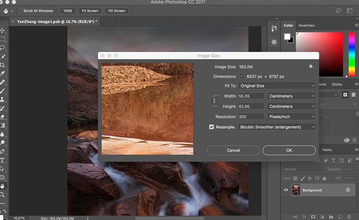 Here is a simple process of enlarging a digital image file to a proper dimension fitting to the required print size.